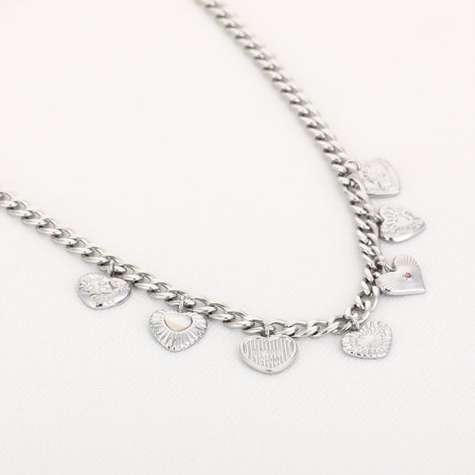 UitverkochtKetting met hartjes en gekleurde steentjes