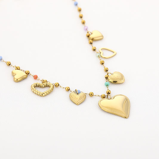 UitverkochtKetting met hartjes en gekleurde steentjes