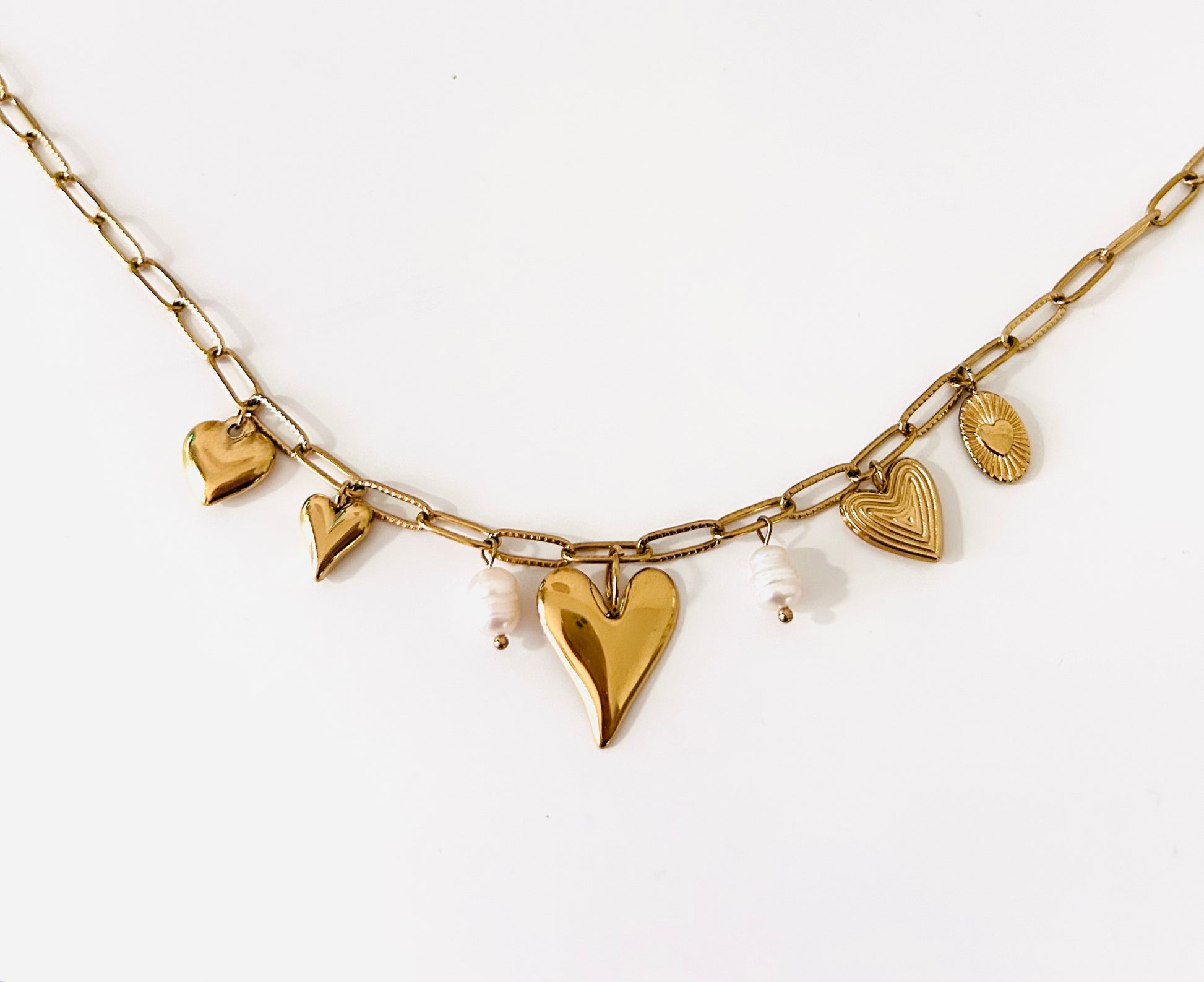 Ketting met hartjes bedels en parels