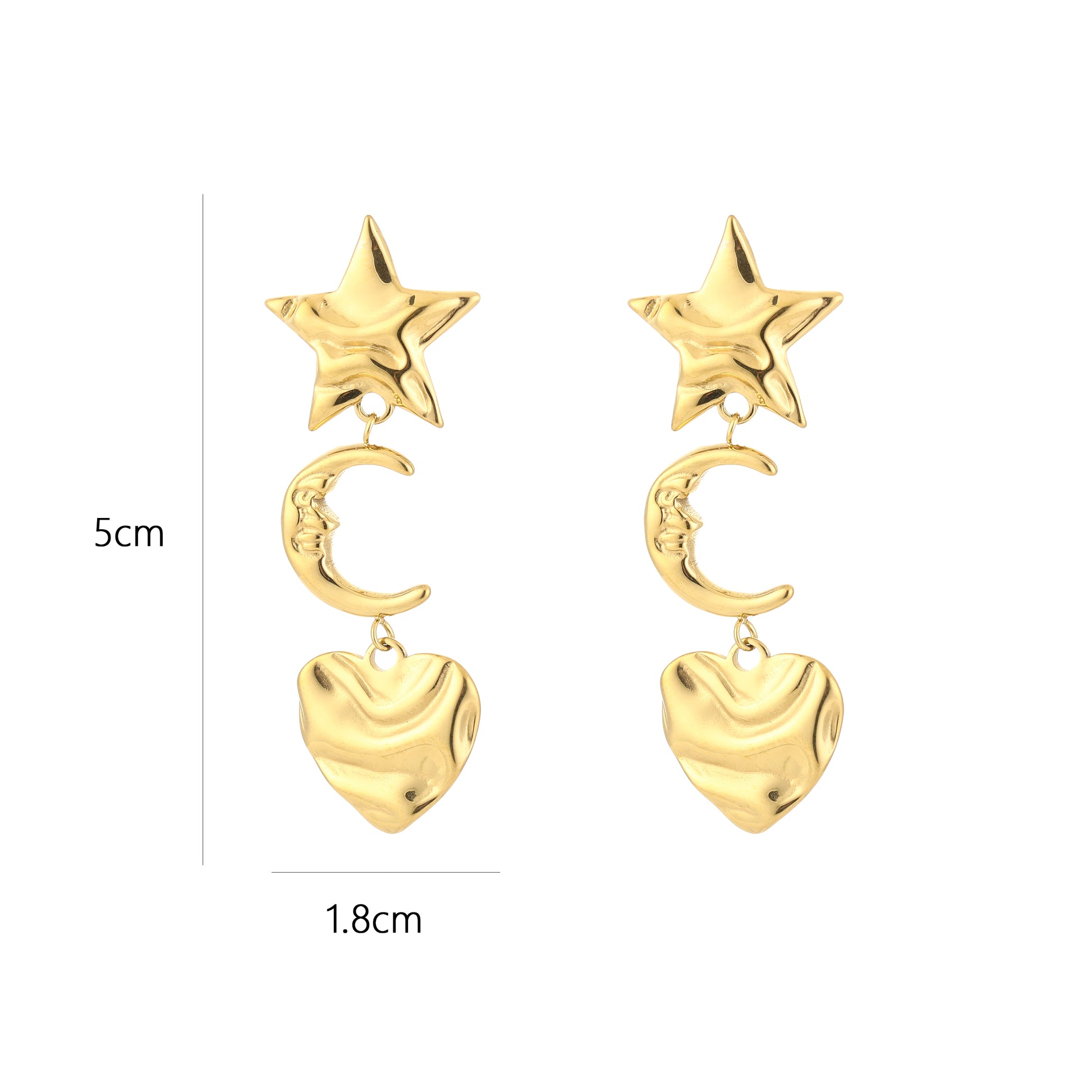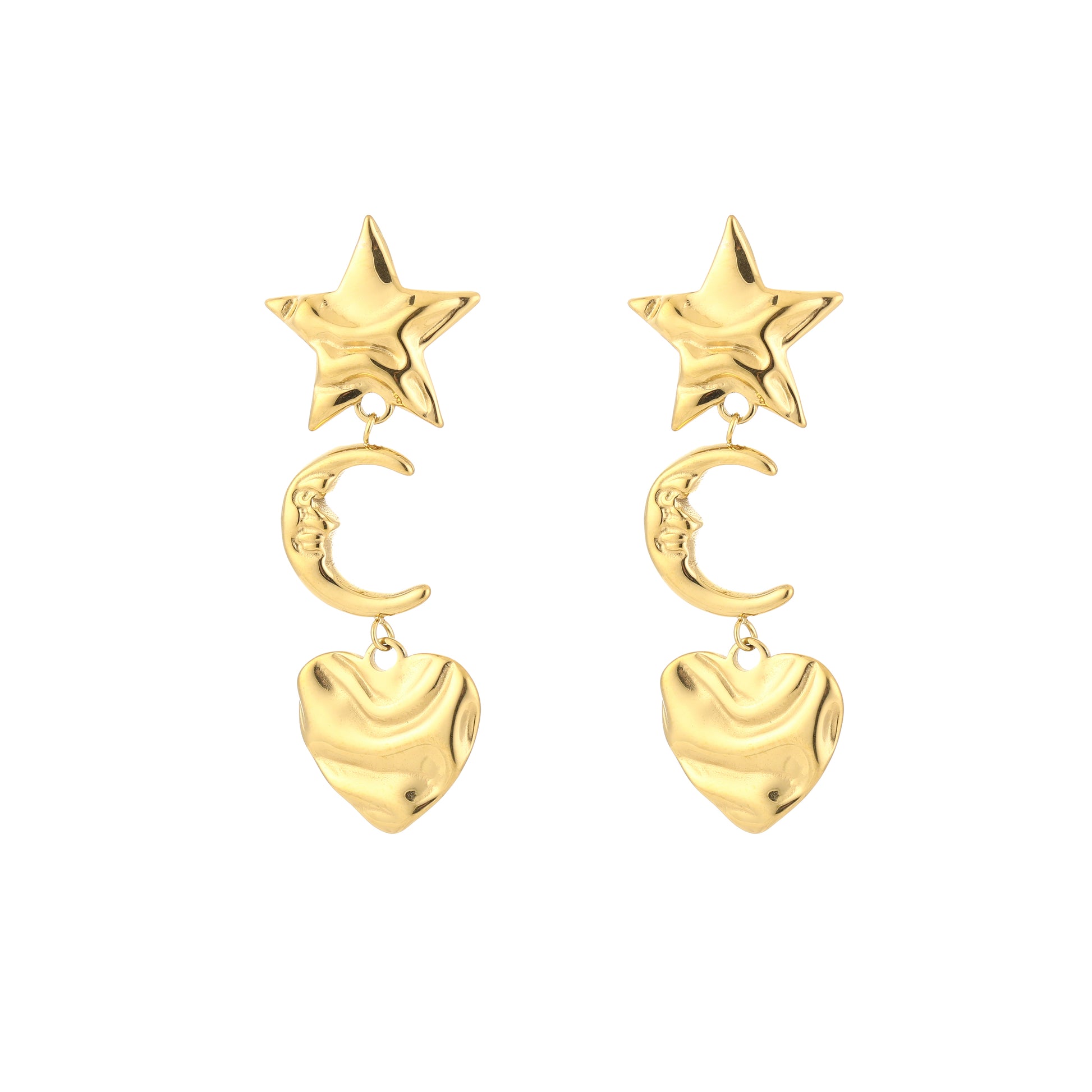 Oorbel met ster, maan en hart